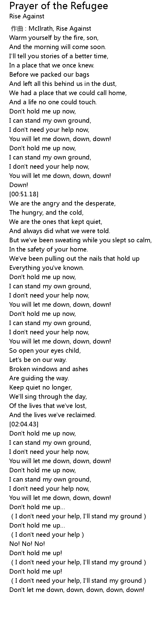 | [00:00.00] | 作曲 : McIlrath, Rise Against |
