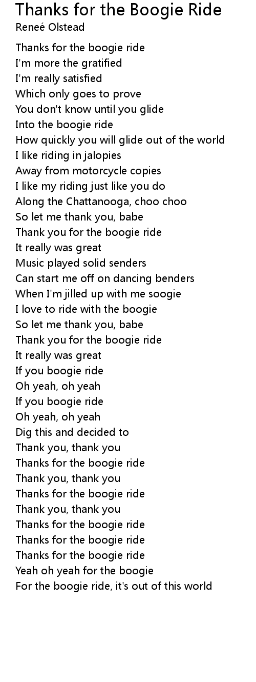 Thank you for the boogie ride |