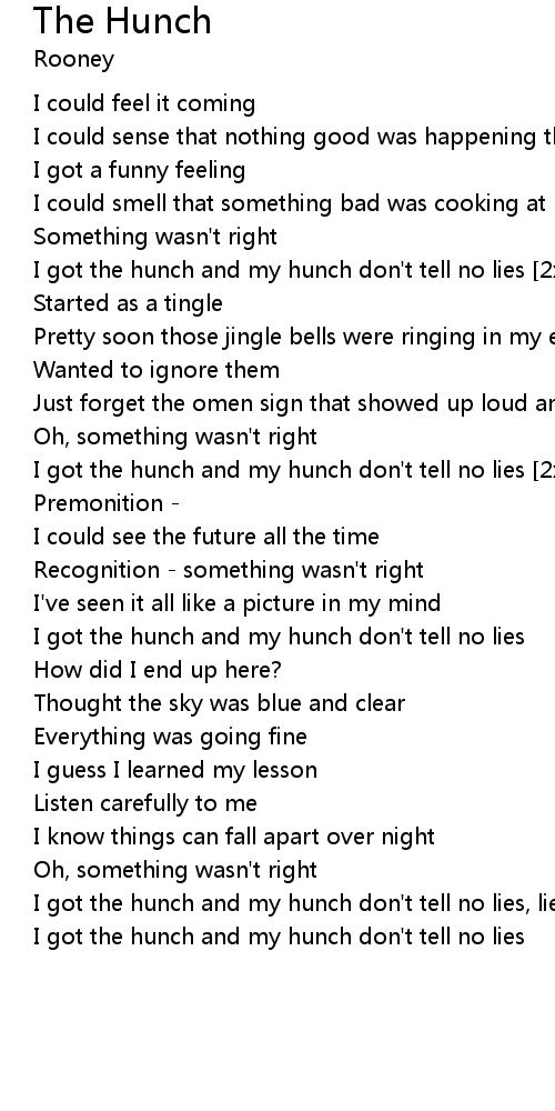 | I got the hunch and my hunch don't tell no lies |