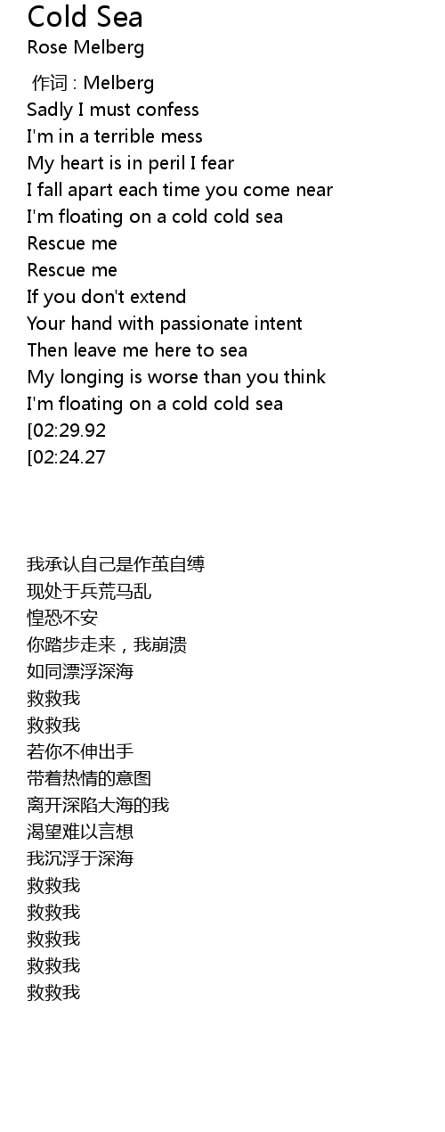 | [02:41.01][02:29.92][02:18.70] | Rescue me |