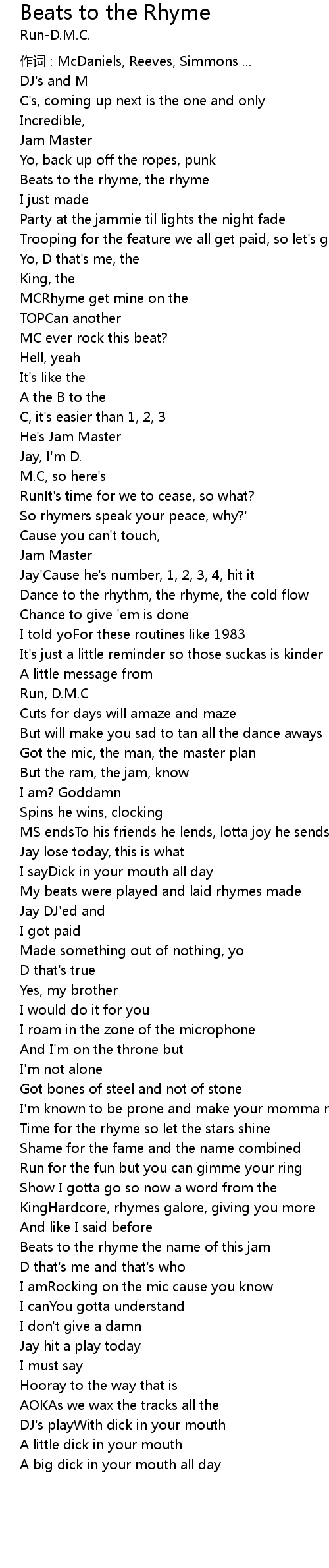 | Beats to the rhyme the name of this jam | |