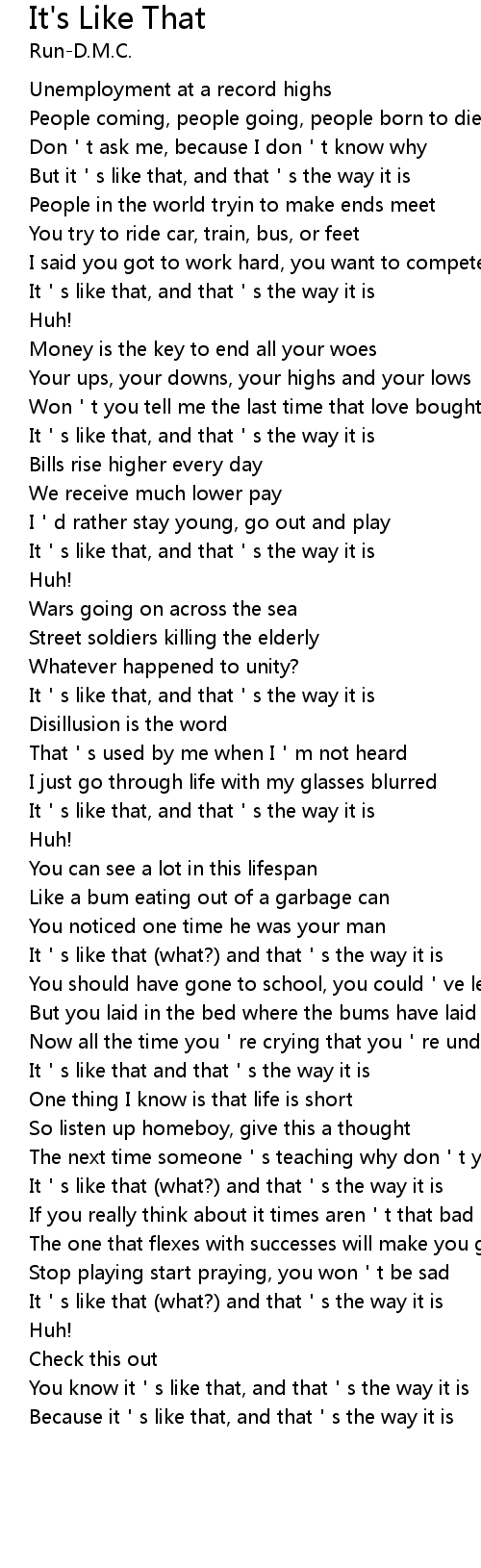 | Song | It's Like That |