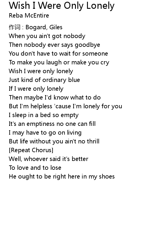 | Wish I were only lonely | |