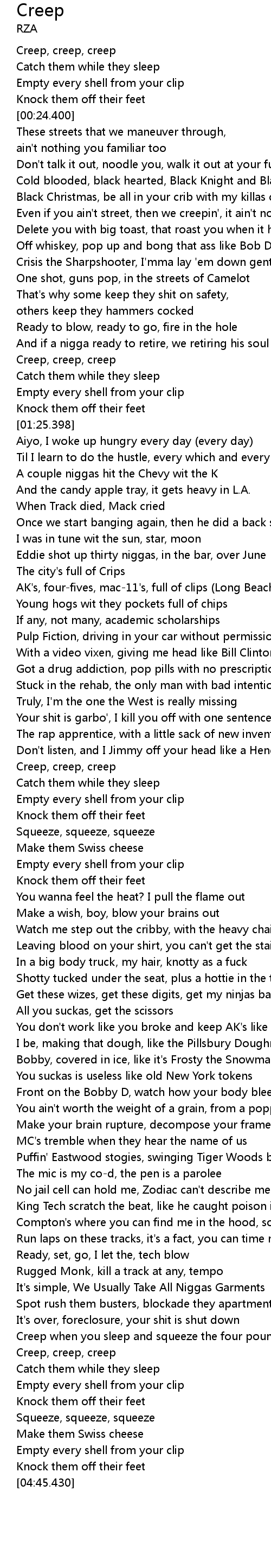 | [00:48.197] | Even if you ain't street, then we creepin', it ain't no secret |