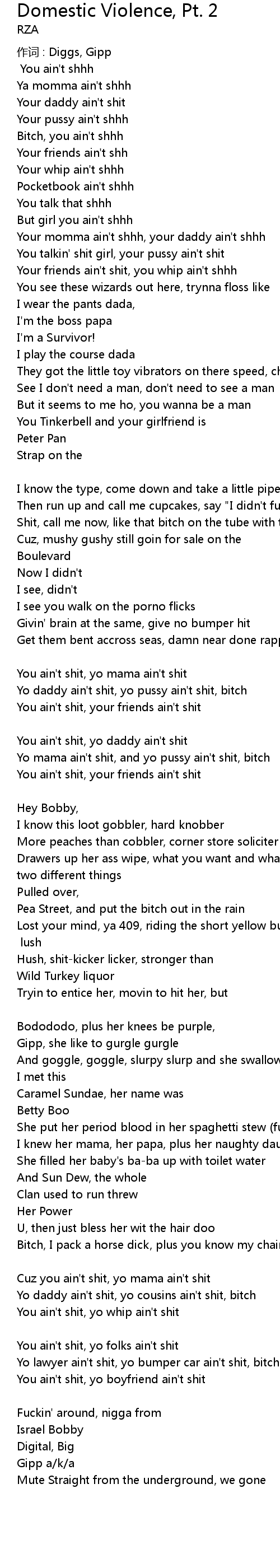 | Your last name ain' t shit, your whole family ain' t shit, bitch Outro: RZA | |