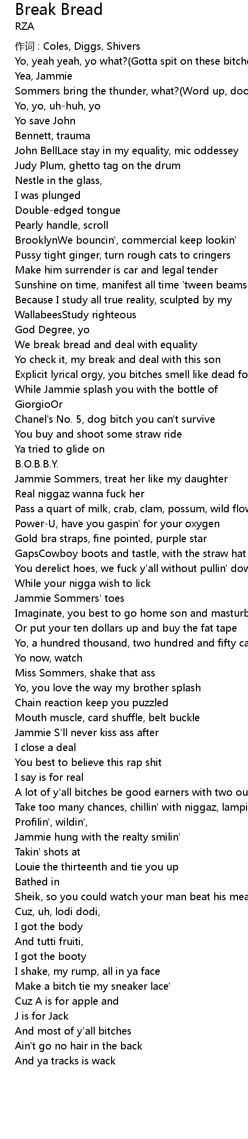 | Explicit lyrical orgy, you bitches smell like dead foggy hoe | |