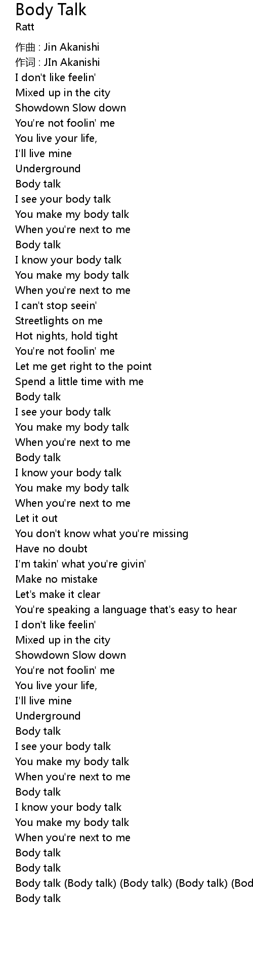 | Body talk (Body talk) (Body talk) (Body talk) (Body talk) | |