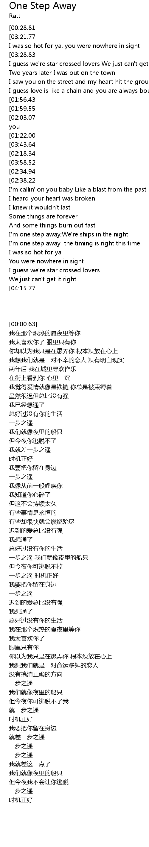 [01:35.11][02:38.22][04:04.93] One step away one step away