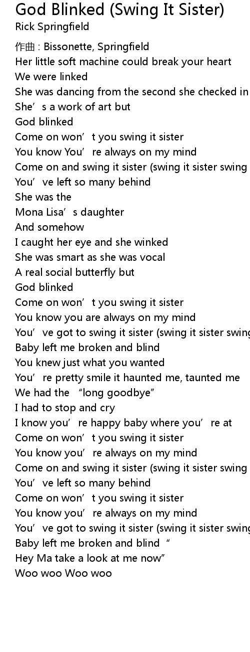 | Come on and swing it sister (swing it sister swing it sister) | |