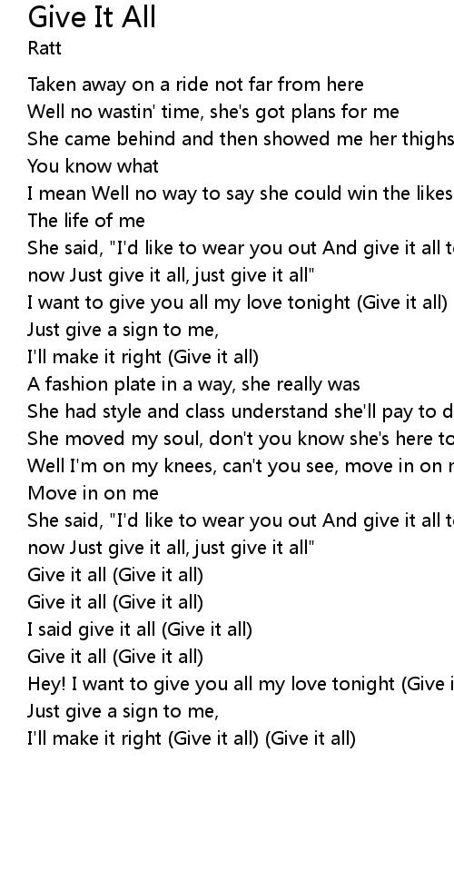 She said, "I'd like to wear you out And give it all to you I'll find a reason now Just give it all, just give it all" |