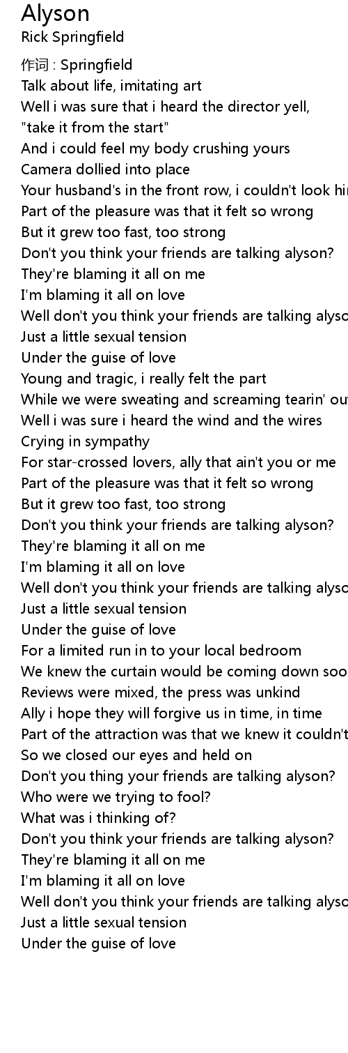| Don' t you think your friends are talking alyson? | |