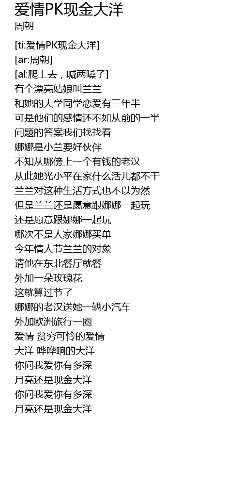 | ti: ài qíng PK xiàn jīn dà yáng | |