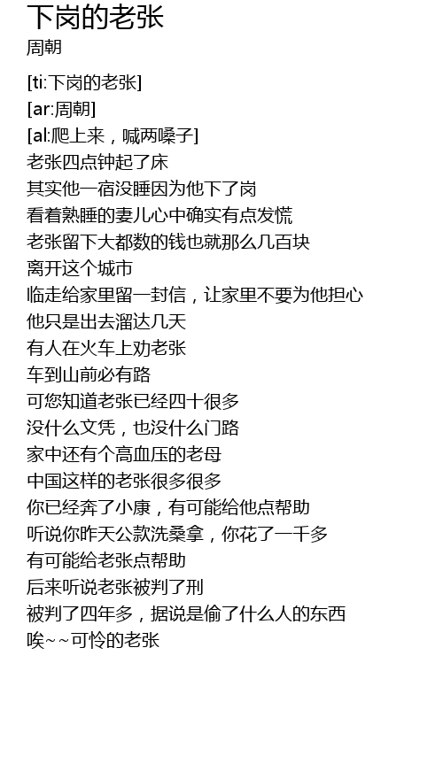 | [02:21.79] | āi kě lián de lǎo zhāng |