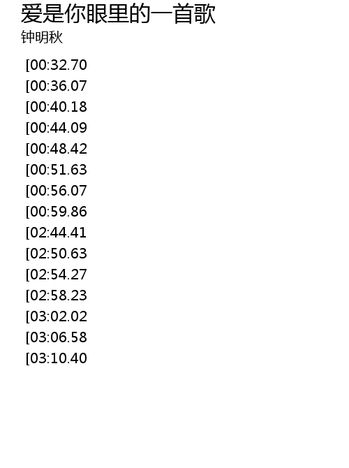 | [03:18.06] [02:44.41] [01:06.17] | 爱是你眼里的一首情歌 |