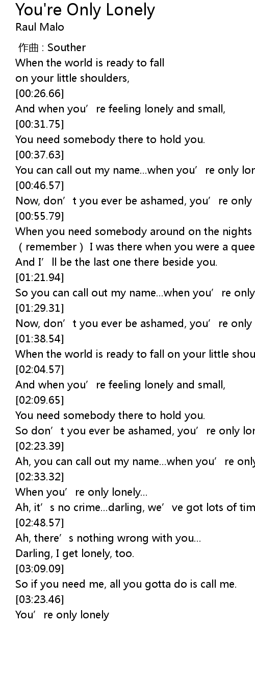| [02:15.61] | So don’t you ever be ashamed, you’re only lonely. |