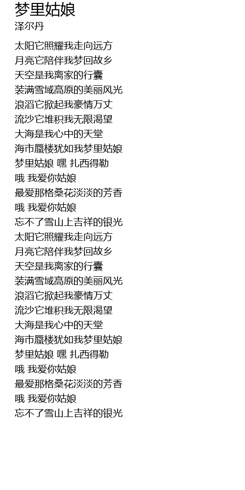 | [01:05.30] | 梦里姑娘 嘿 扎西得勒 |