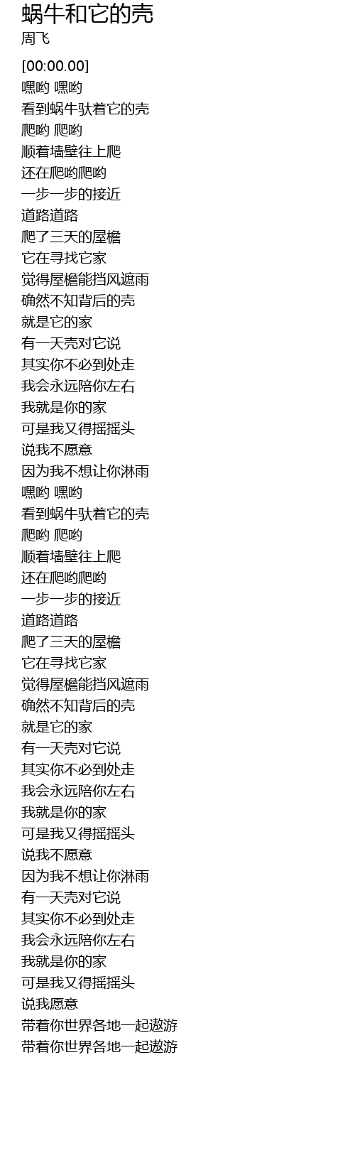 | [02:00.808] | 看到蜗牛驮着它的壳 |