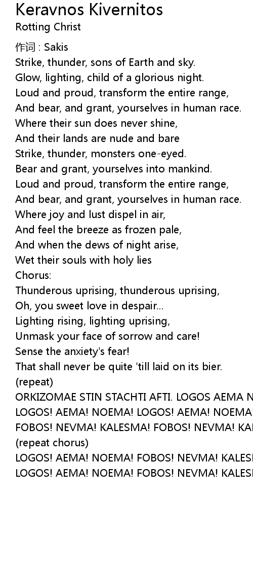 | ORKIZOMAE STIN STACHTI AFTI. LOGOS AEMA NOEMA. | |