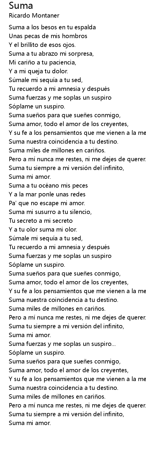 | Pero a mí nunca me restes, ni me dejes de querer. | |