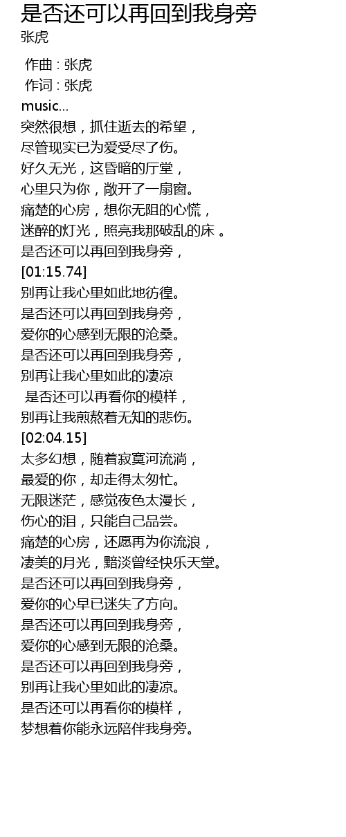 | [00:00.00] | zuò qǔ : zhāng hǔ |