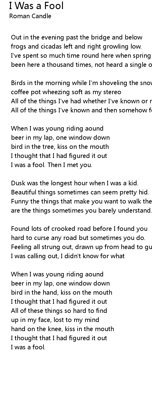 | Song | I Was a Fool |