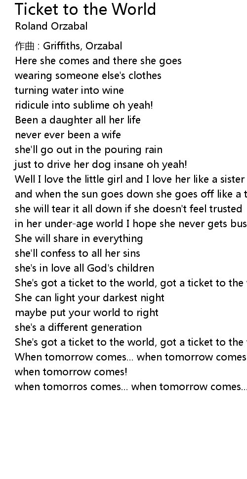 | She' s got a ticket to the world, got a ticket to the world... | |