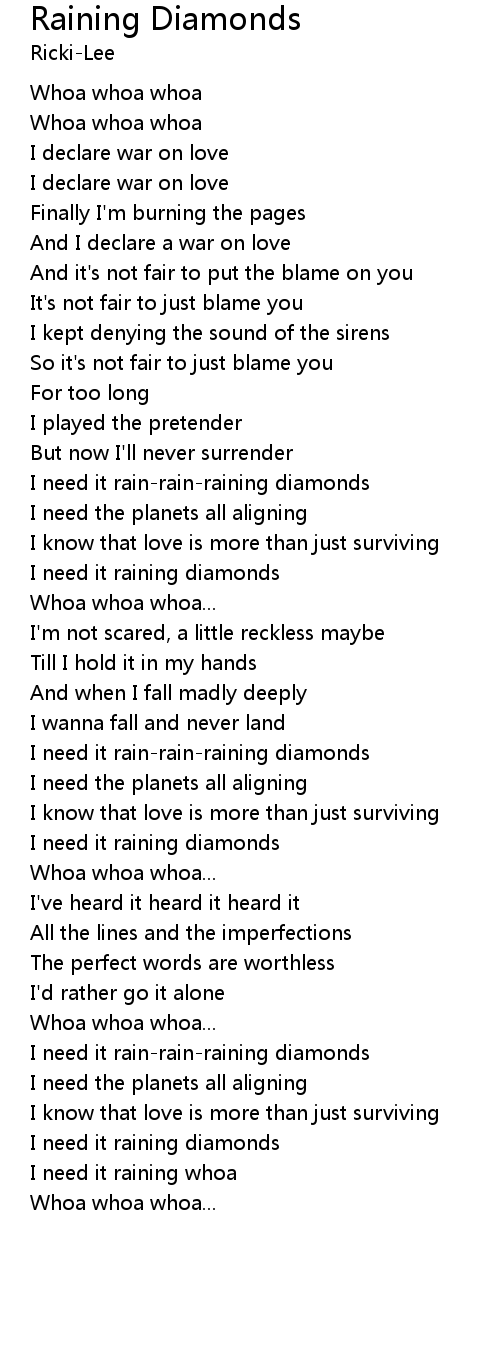 I need it raining diamonds |