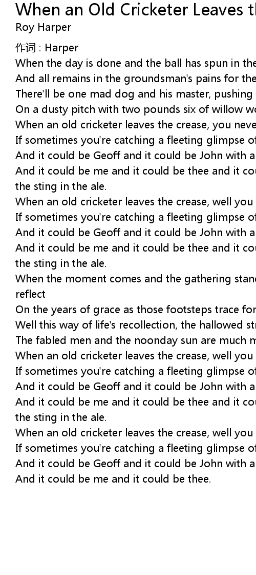 | When an old cricketer leaves the crease, well you never know whether he' s gone | |