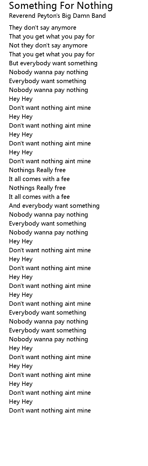 Don't want nothing aint mine |