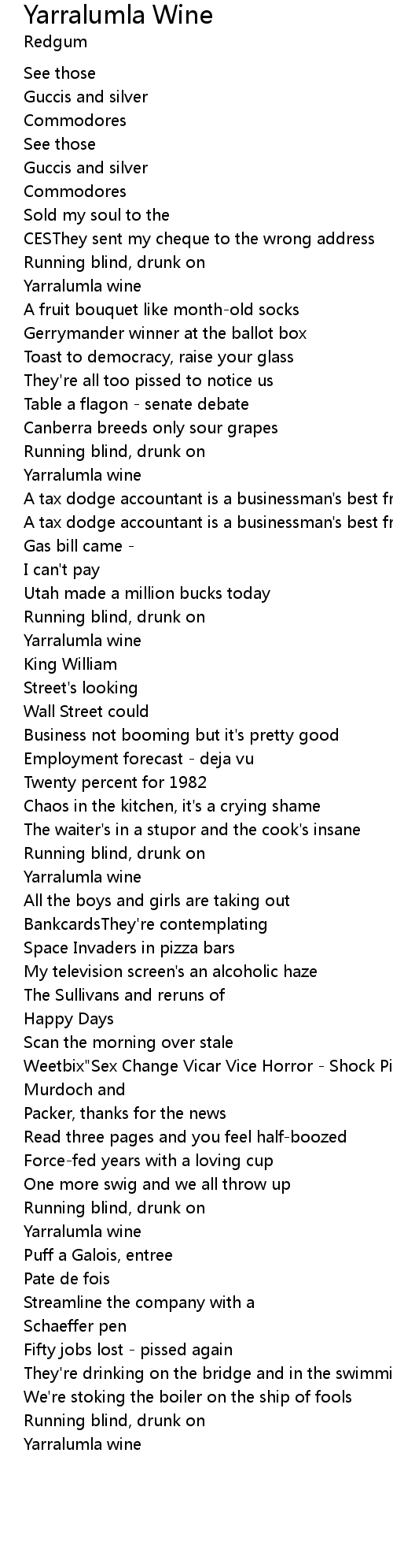 Yarralumla Wine Lyrics
