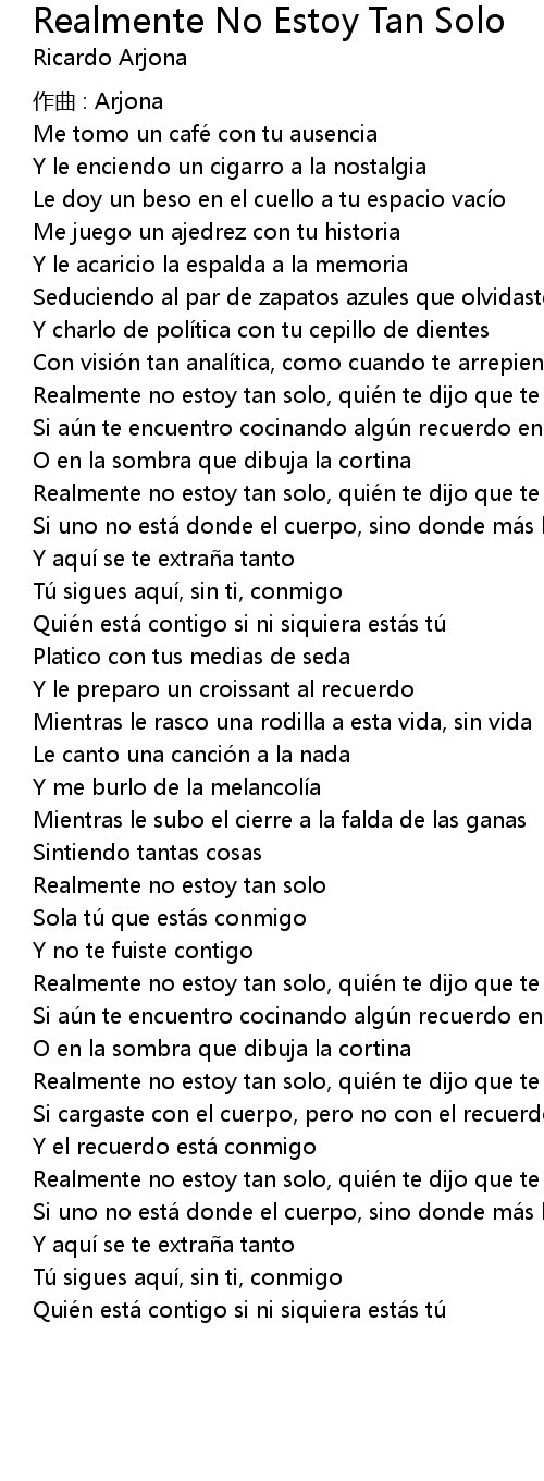 | Song | Realmente No Estoy Tan Solo |