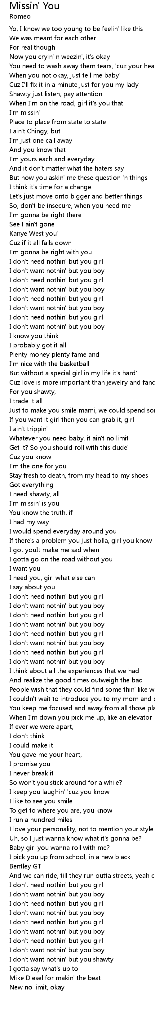 | I don't need nothin' but you girl | |