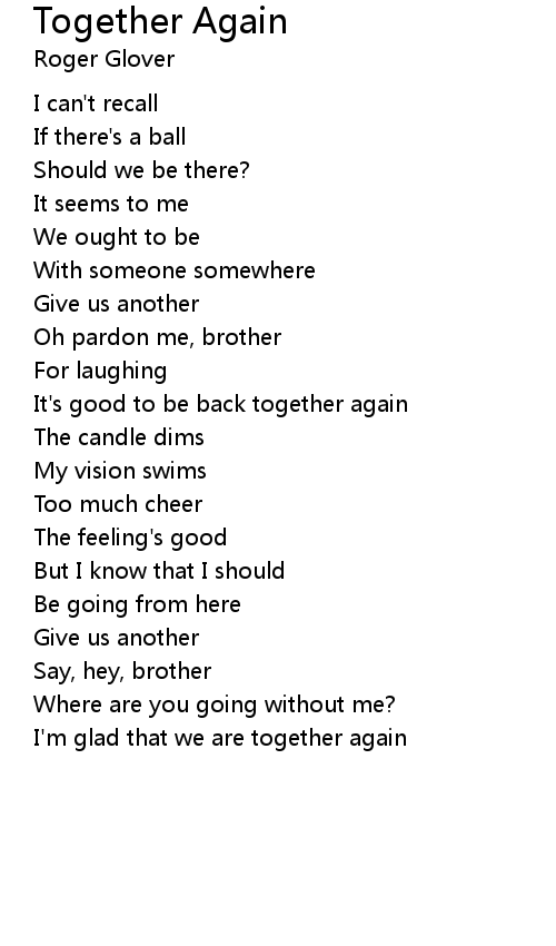 | I'm glad that we are together again |