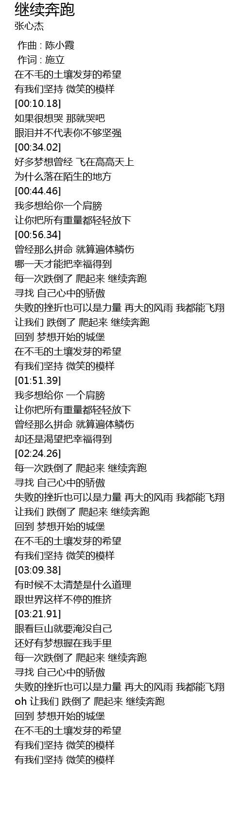 | [01:29.18] | 让我们 跌倒了 爬起来 继续奔跑 |