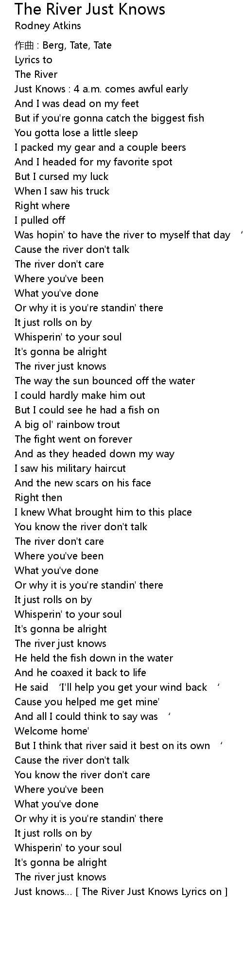 | Just knows… [ The River Just Knows Lyrics on ] |