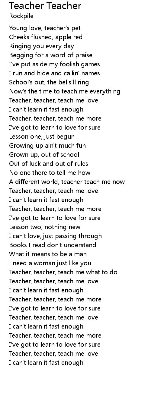 Teacher, teacher, teach me more |