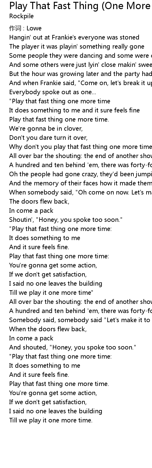 | Song | Play That Fast Thing (One More Time) |
