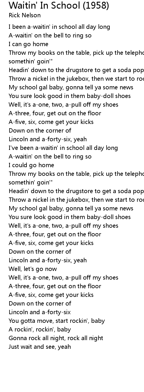 I've been a-waitin' in school all day long |