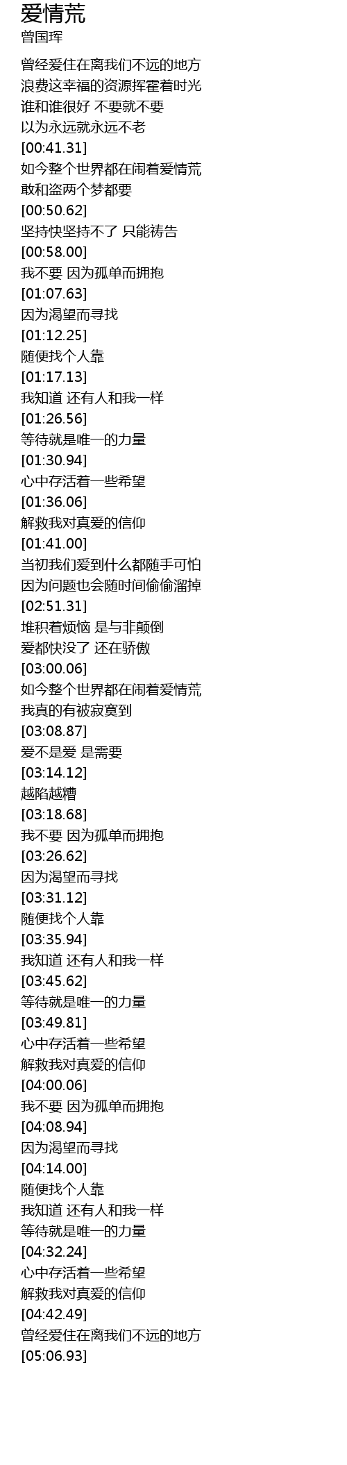 | [00:42.69] | 如今整个世界都在闹着爱情荒 |