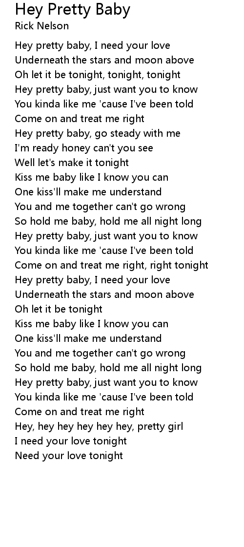 Hey pretty baby, I need your love |