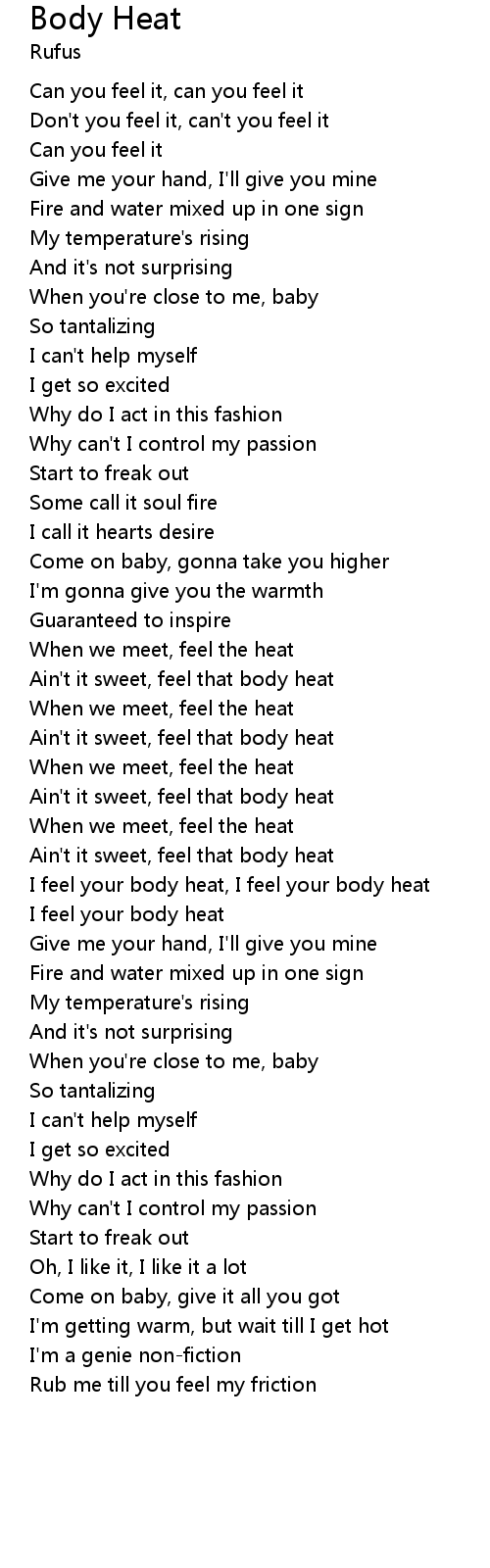 | I feel your body heat, I feel your body heat | |