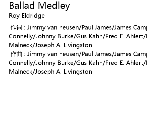 | [00:00.000] | zuo ci : Jimmy van heusen Paul James James Campbell Ted Shapiro Reg Connelly Johnny Burke Gus Kahn Fred E. Ahlert Roy Turk Kay Swift Matty Malneck Joseph A. Livingston |