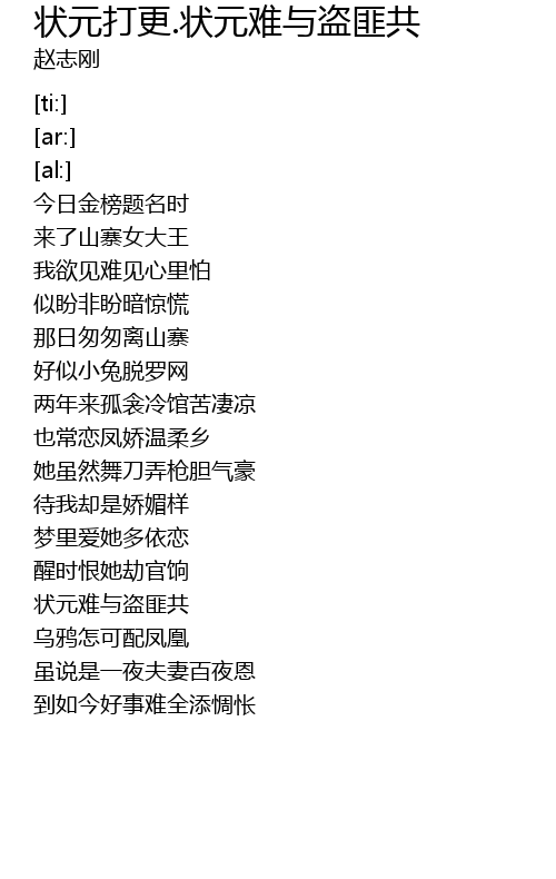 | Song | 状元打更.状元难与盗匪共 |
