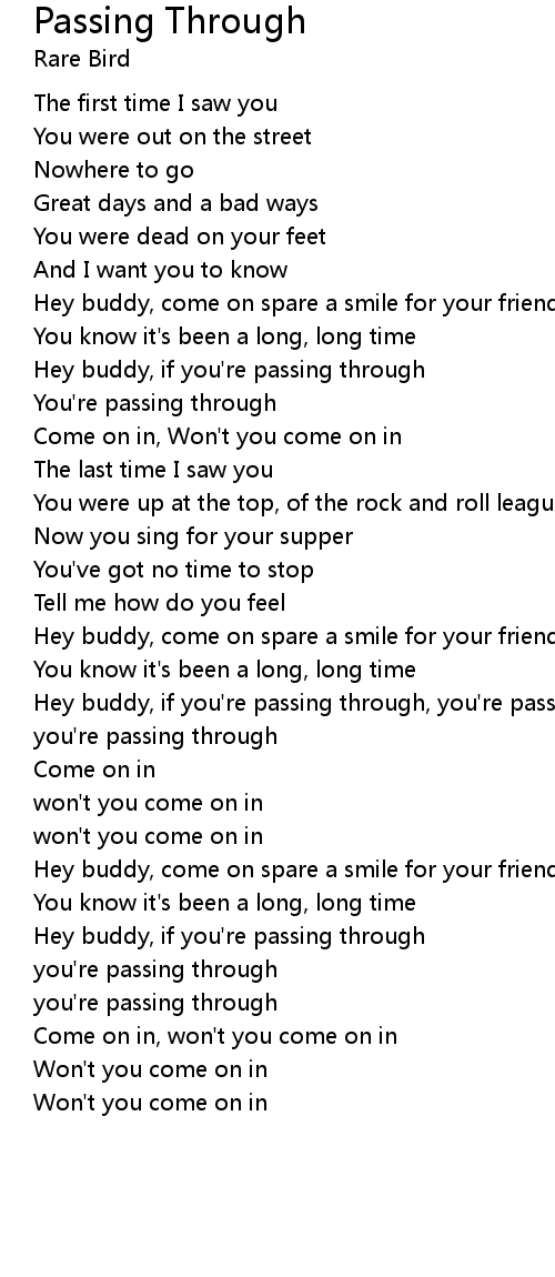Hey buddy, if you're passing through, you're passing through |