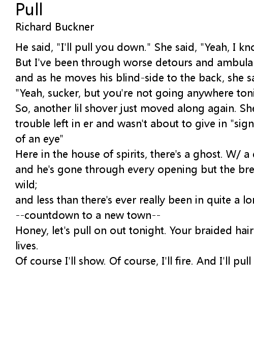 Honey, let's pull on out tonight. Your braided hair's been pulling us into our lives. |