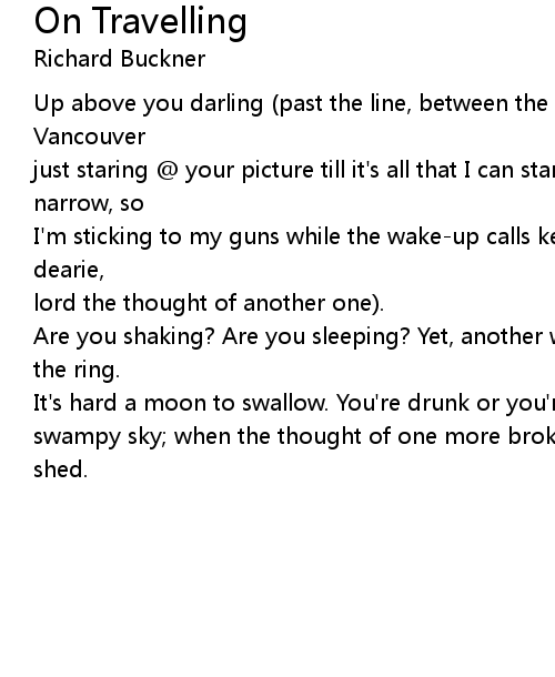Up above you darling (past the line, between the land), I'll call you from Vancouver