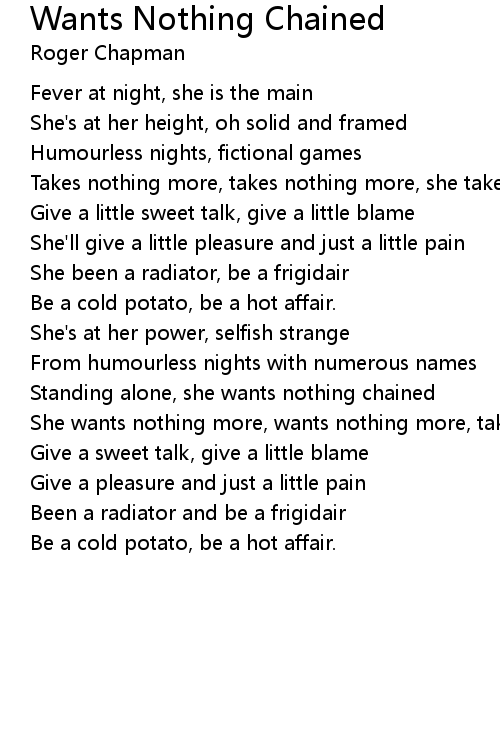 She wants nothing more, wants nothing more, takes nothing chained. |