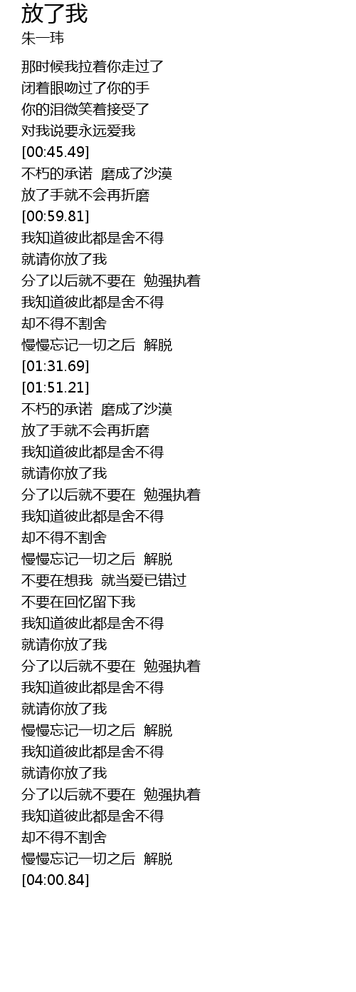 | [01:05.39] | jiù qǐng nǐ fàng le wǒ |