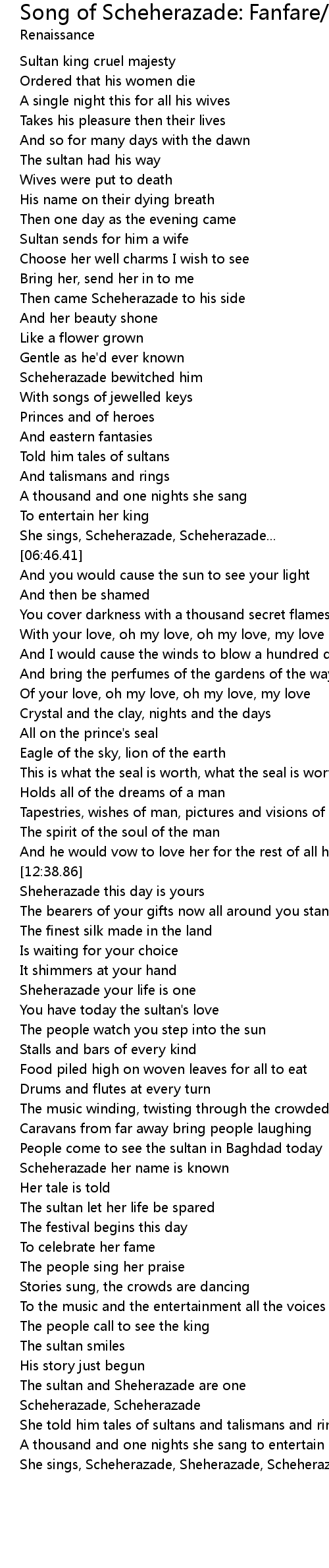 She sings, Scheherazade, Sheherazade, Scheherazade... |