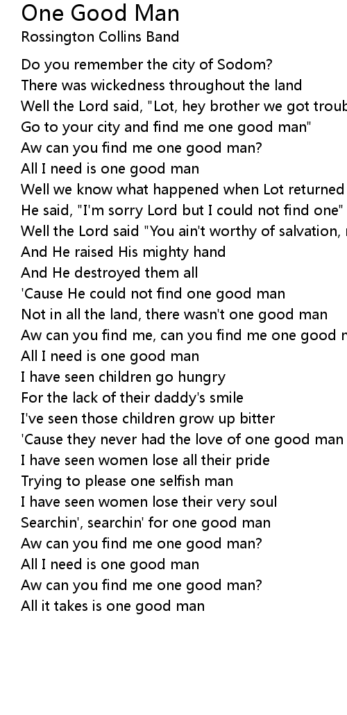 Aw can you find me, can you find me one good man? |